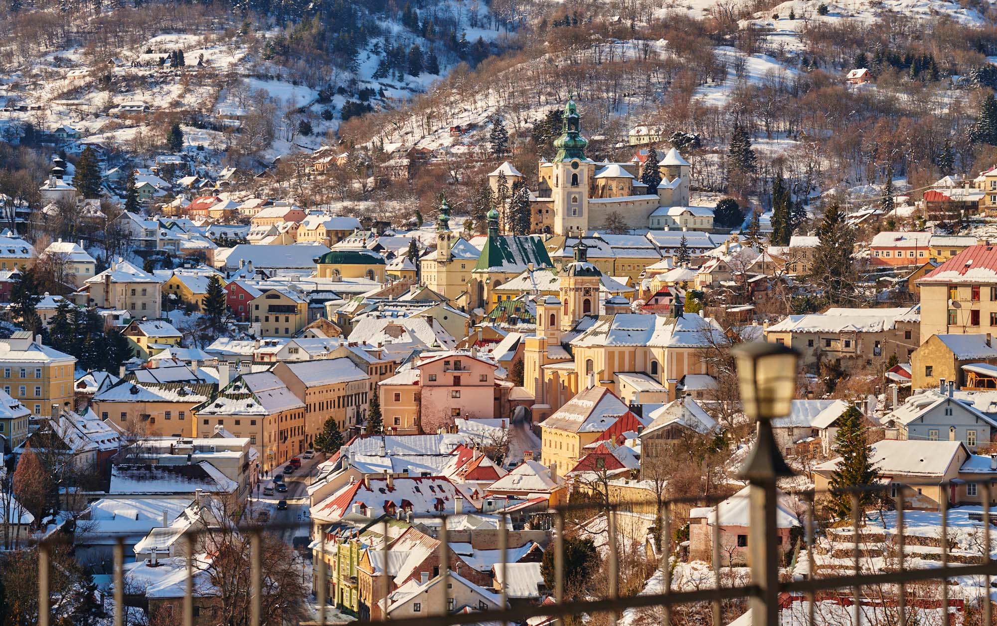 - Úchvatný výhľad na historické centrum Banskej Štiavnice.