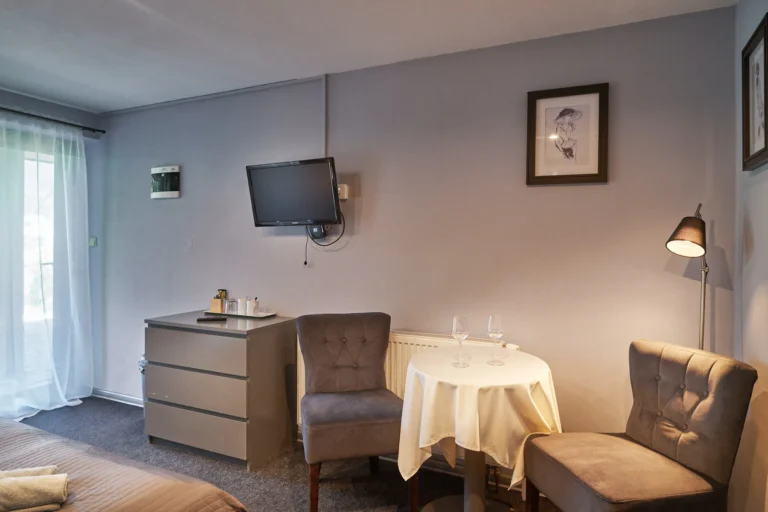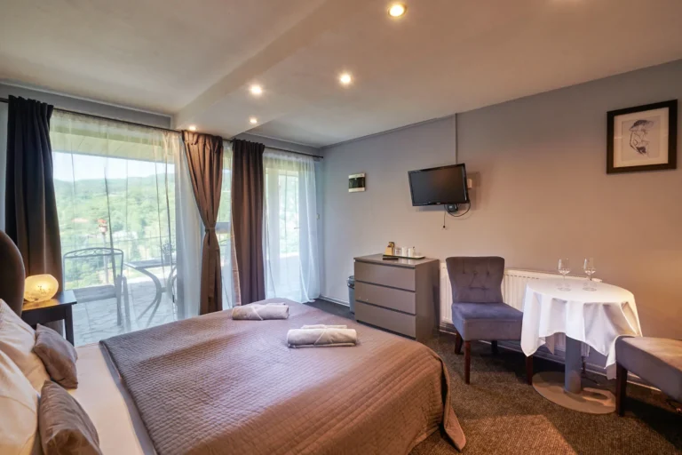 Izba je s manželskou posteľou bez možnosti prístelku s kúpeľňou, wifi free, chladničkou, rýchlovarnou kanvicou, káva, čaj, TV. Vlastné vonkajšie sedenie. Izba má rozlohu 13,60 m2 a kúpeľňa 3,60 m2.
