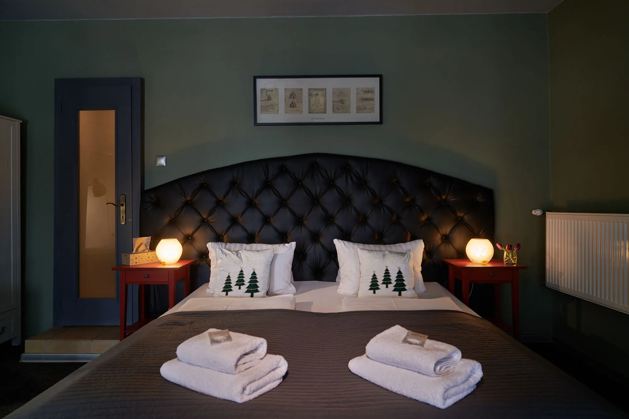 Izba je vybavená manželskou posteľou, rozkladacou sedačkou s výborným matracom, kúpeľňou, wifi free, chladničkou, rýchlovarnou kanvicou, káva, čaj, TV. Vlastné vonkajšie sedenie. Izba má rozlohu 21 m2 a kúpeľňa 3,60 m2.