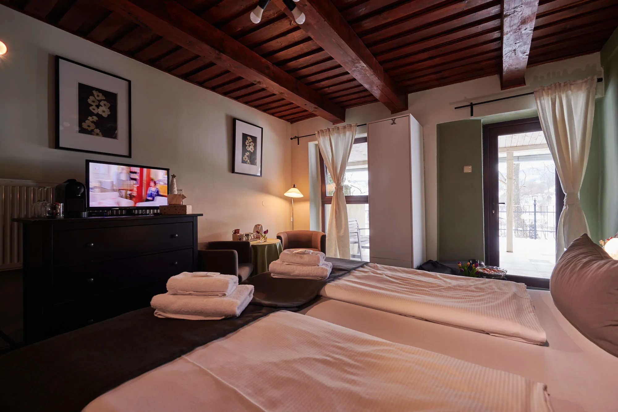 V novo prerobenej elegantnej izbe s výhľadom na historické centrum je možné ubytovanie pre 2 osoby.