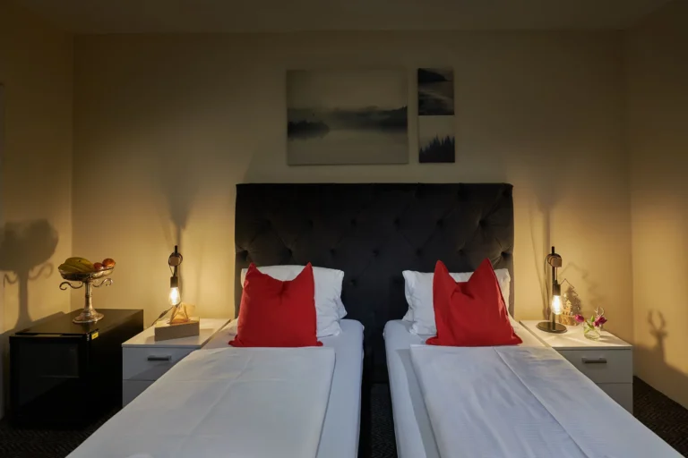 Izba je vybavená posteľami s možnosťou rozloženia, bez možnosti prístelku, kúpeľňou, chladničkou, rýchlovarnou kanvicou, káva, čaj, TV. Izba má rozlohu 20 m2 a kúpeľňa 3,30 m2.