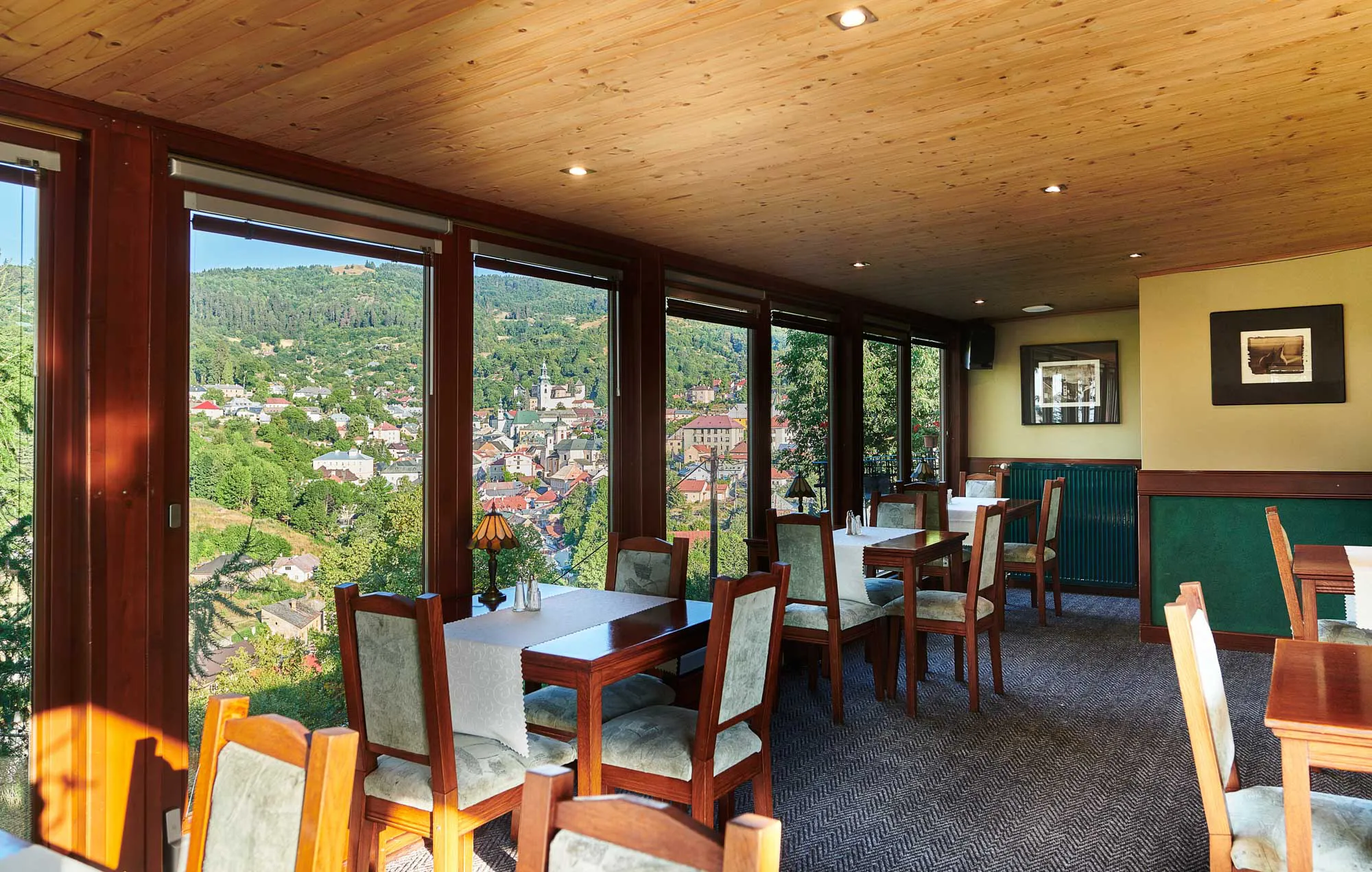 - Salónik: 21 osôb, celopresklenný, s nádherným výhľadom na historické centrum Banskej Štiavnice a súkromnou terasou